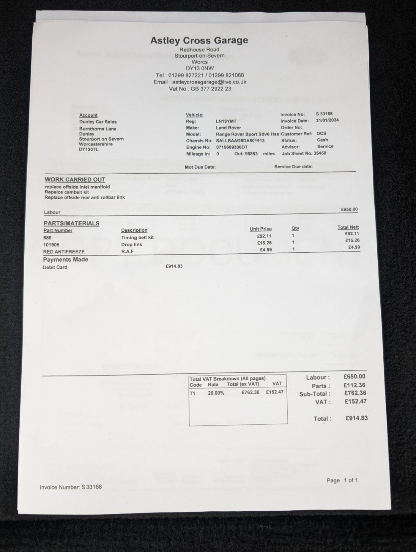 2 x USB sockets in console stowage/3.5mm AUX in
