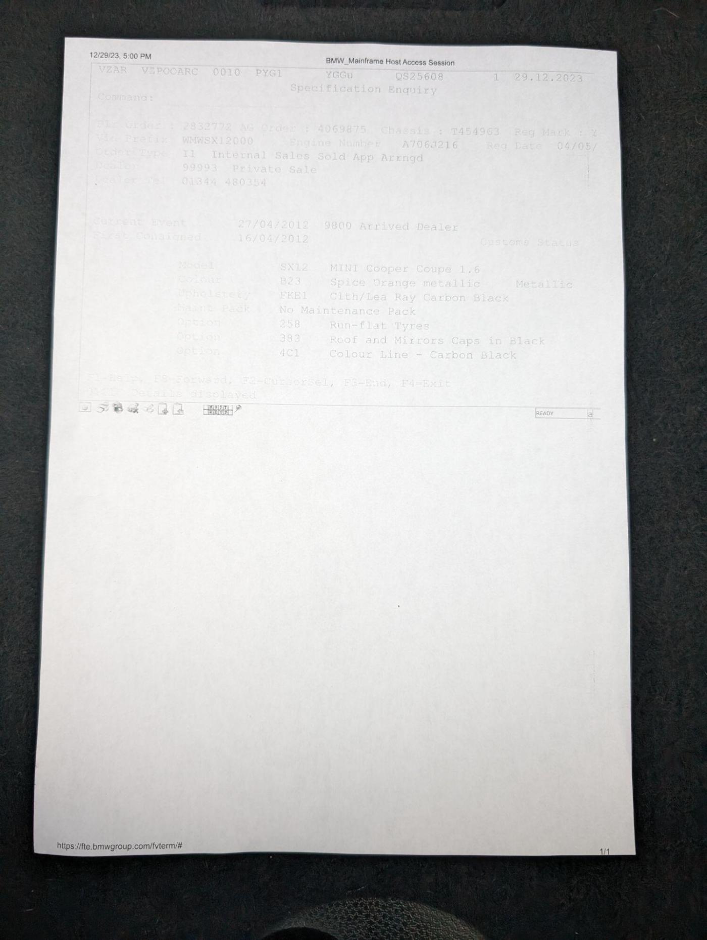 Dunley car sales are pleased to offer this very well presented Mini Coupe, finished in stunning Spicy orange metallic, Chilli pack, serviced & mot'd ready for its new owner to enjoy, 2 keys & full Mini owners pack.