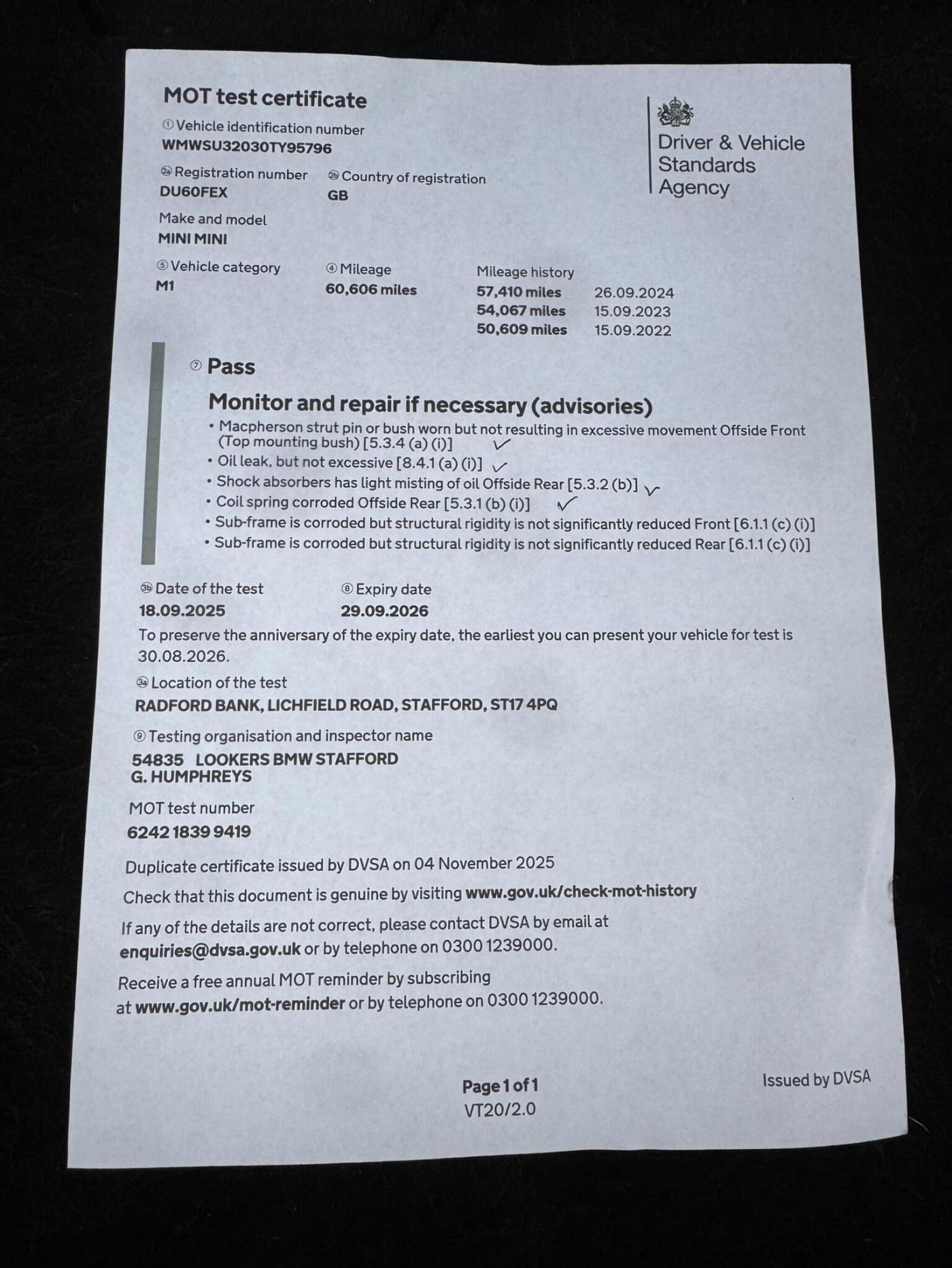 💥NEW MOT NO ADVISORIES 💥