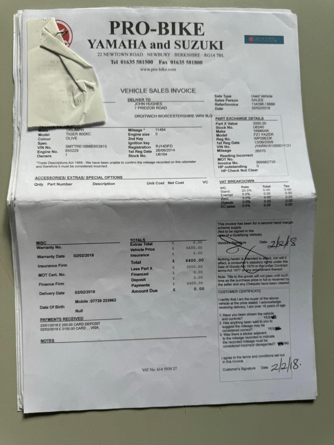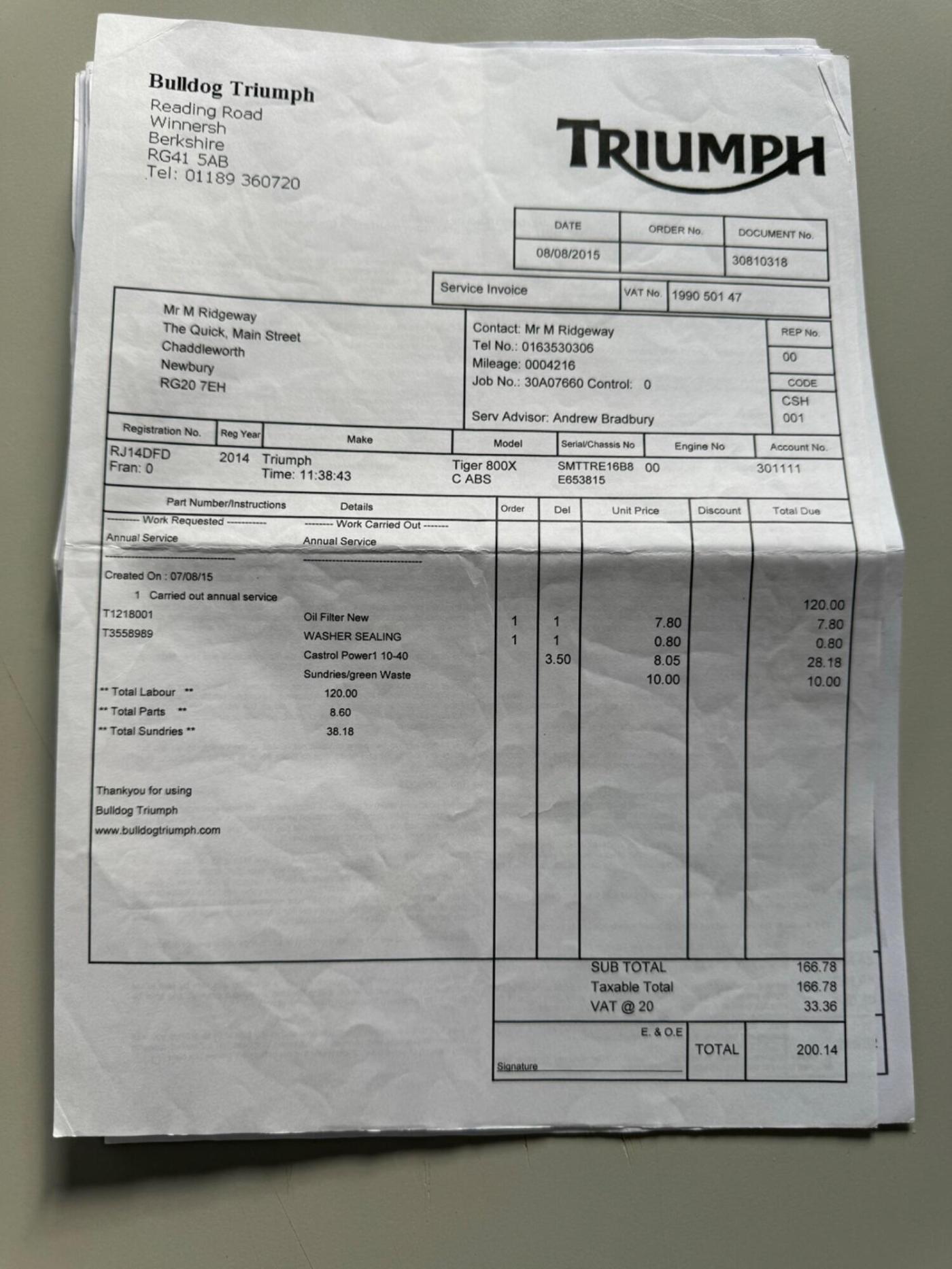 Dunley car sales are pleased to offer this outstanding Tiger 800, last owner 2018, full & comprehensive service history, riding lights, heated grips, engine guards, this bike rides superbly, just mot'd by BMW Shrewsbury, viewing highly recommended.